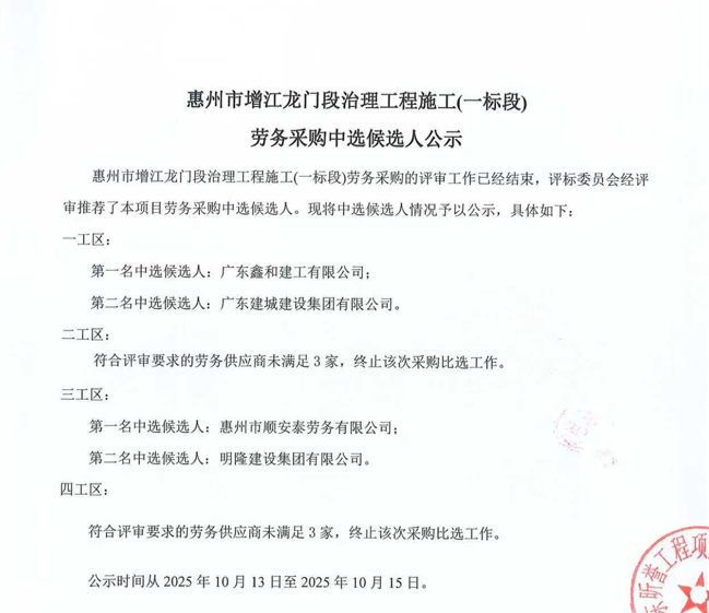 惠州市水電建筑工程有限公司勞務供應商庫擴庫評審結果公示……